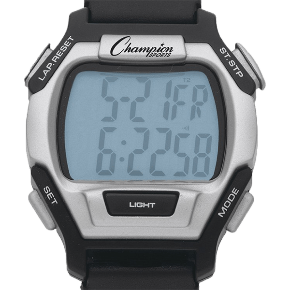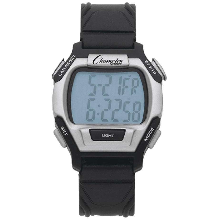 Rugged sports watchband • 10 Memory • Bright EL night light display • 24 Hour stopwatch • Every workout is stored as a separate recallable run • 12/24 hr format with alarm • Split release feature unlocks after 5 sec. to display current running lap time • Programmable countdown/countup time • Recalls 10 cum & lap split to 1/100 of a second • Dual timer • Hourly chime • Water (up to 300’) & shock resistant