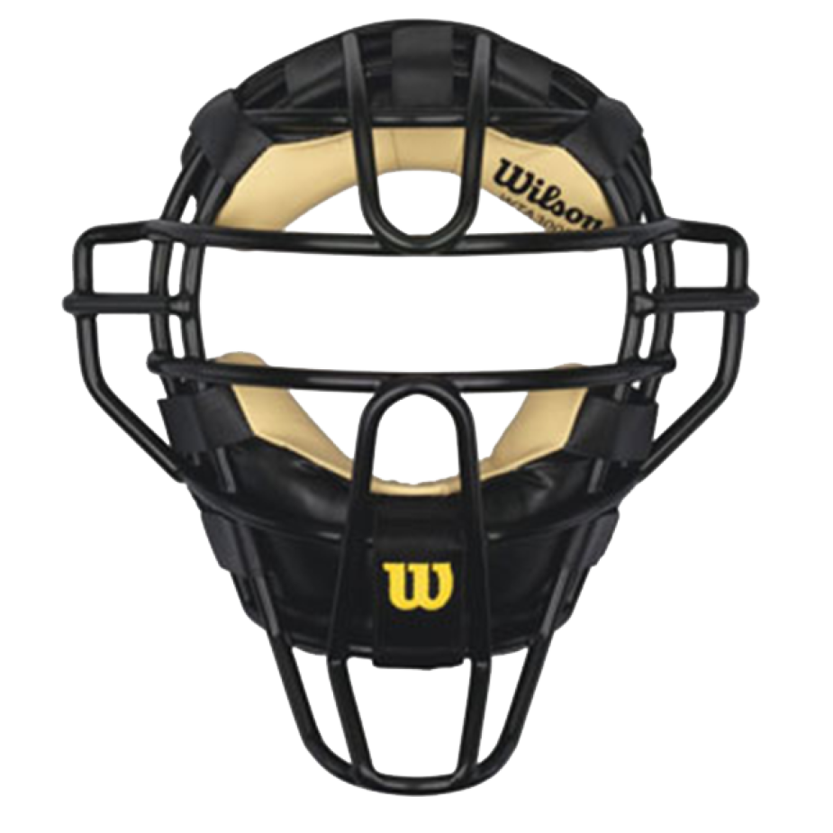 Wilson A3009X Dyna-Lite umpire face masks are lightweight umpire masks with deerskin padding and matching outside vinyl covered pads. This Wilson umpire mask has a one bar design for an optimal field of vision. Wilson A3009X umpire masks have an extended throat protector and the MLB logo on the back harness. Features: